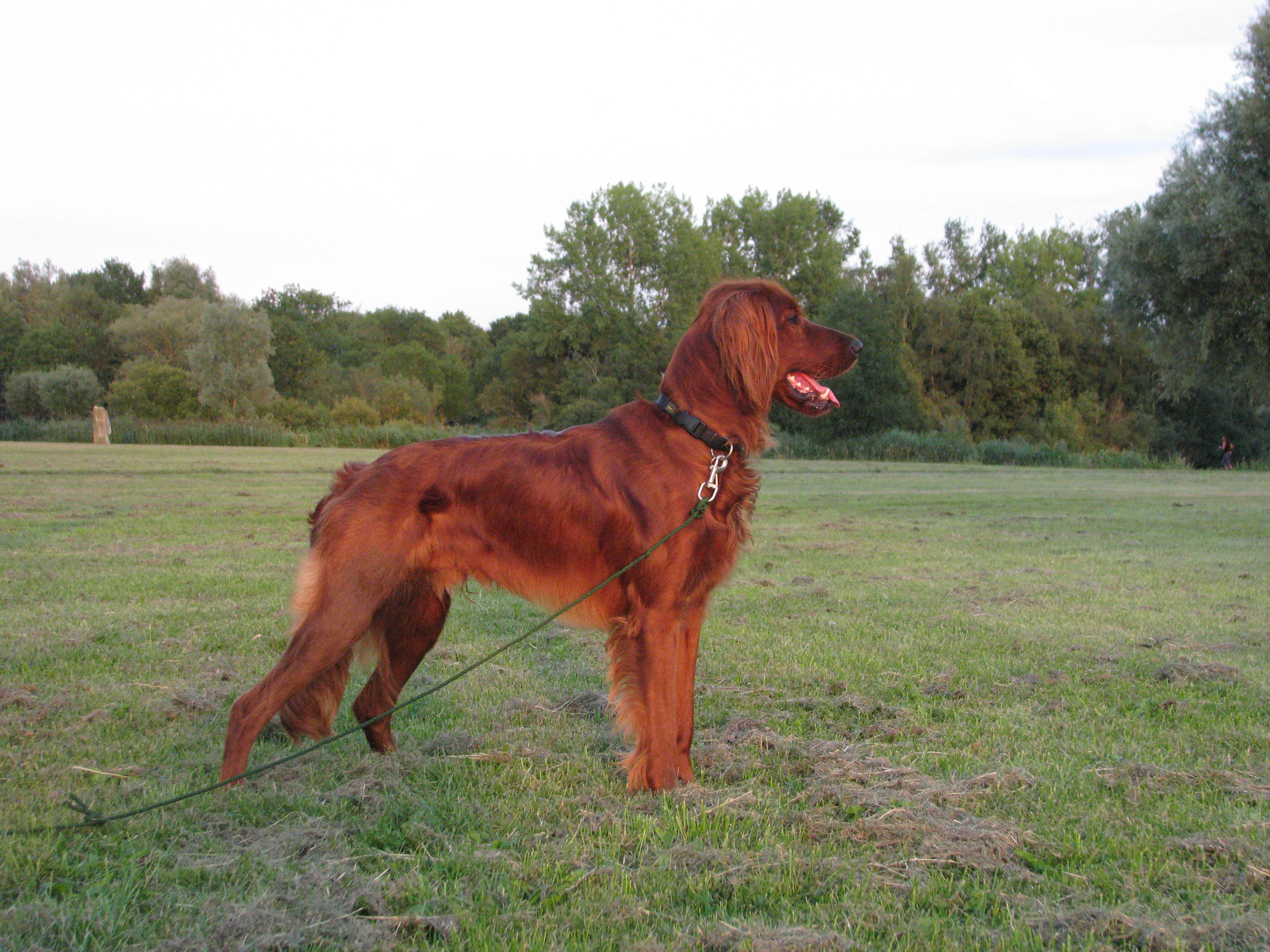 Ik blik even terug op Kells sinds haar komst, dat was eind mei 2011. Ik had mij al goed ingelezen waar het de werkende (oorspronkelijke) setter betrof. Henk zijn schrijfsels in de Ierse Setter Klanken en op het www volgde ik al jaren. De boeken “Hond Staat” van Rembrandt Kersten en “The Irish Red Setter, It’s History Character and Training” van Raymond O’Dwyer las ik in een adem uit. Lezen is een ding maar doen is wat anders! Dus na een gewenningsperiode voor Kells en na een mooie zomervakantie begonnen wij in oktober 2011 aan een jachtcursus. Deze werd georganiseerd door de Ierse Setter Club en werd geleid door Gerard Mirck, eigenaar van de Pallas Green kennel en de fokker van Kells. Kells liet op de cursus al zien dat ze (een aangeboren) talent had. Ze loopt supersnel en maakt daarbij mooie lange slagen. Ze loopt op de wind die ze zelf opzoekt en neemt nog even een houtwal mee die achter ons ligt, zonder dat haar dat ooit geleerd is. Een natuurtalent dus! Nu was het de bedoeling om in het voorjaar van 2012 te beginnen met veldwedstrijden. Gezien haar leeftijd kon ik Kells niet meer uitbrengen in een jeugdwedstrijd en dat maakte het er voor mij, als beginnend voorjager, niet makkelijker op. De enige voorjaarsveldwedstrijd waar ik in 2012 voor kon inschrijven werd afgelast wegens gebrek aan vogels. De wedstrijden die later volgden werden of afgelast of ik kon niet inschrijven omdat Kells dan loops zou zijn.