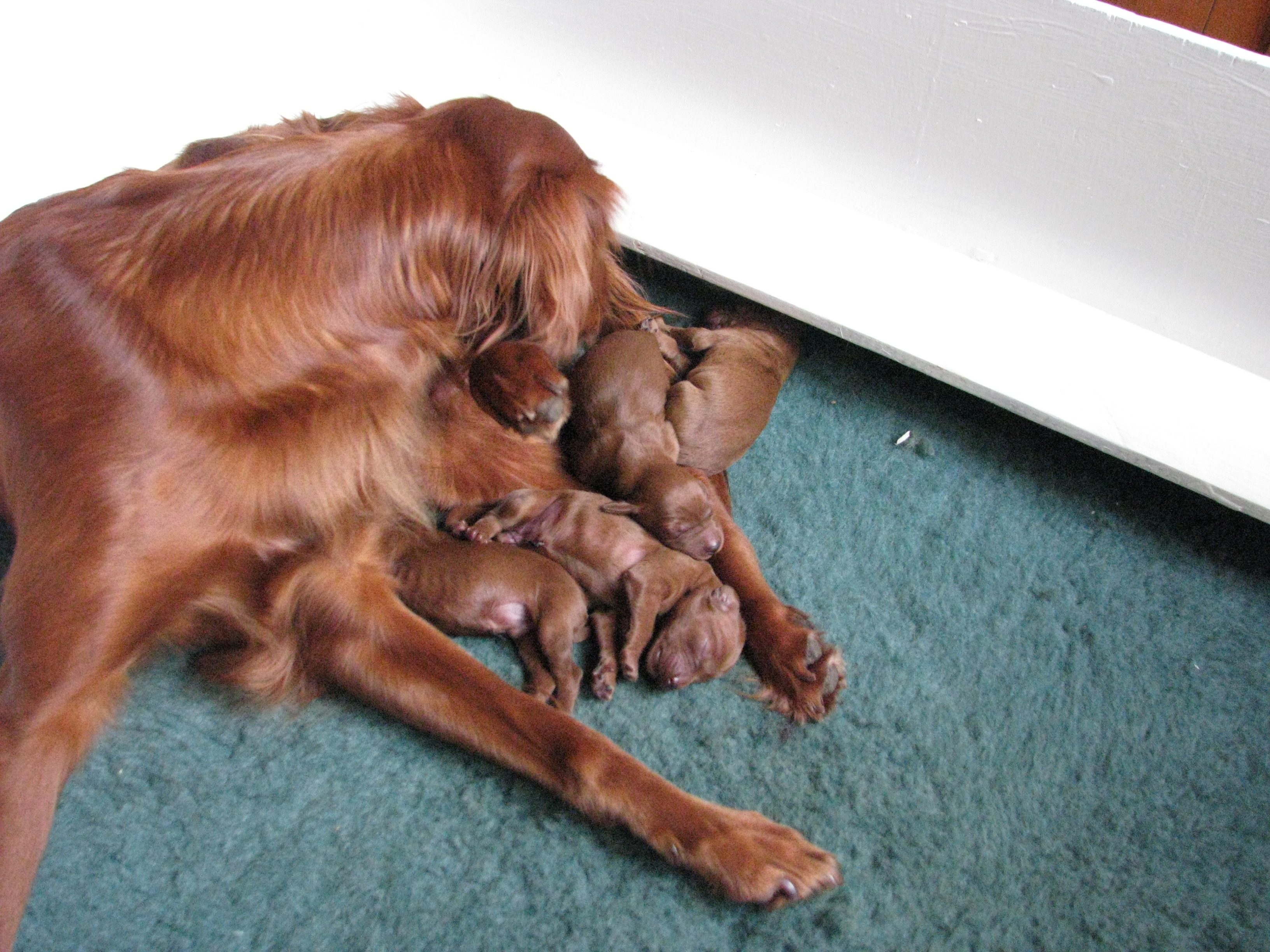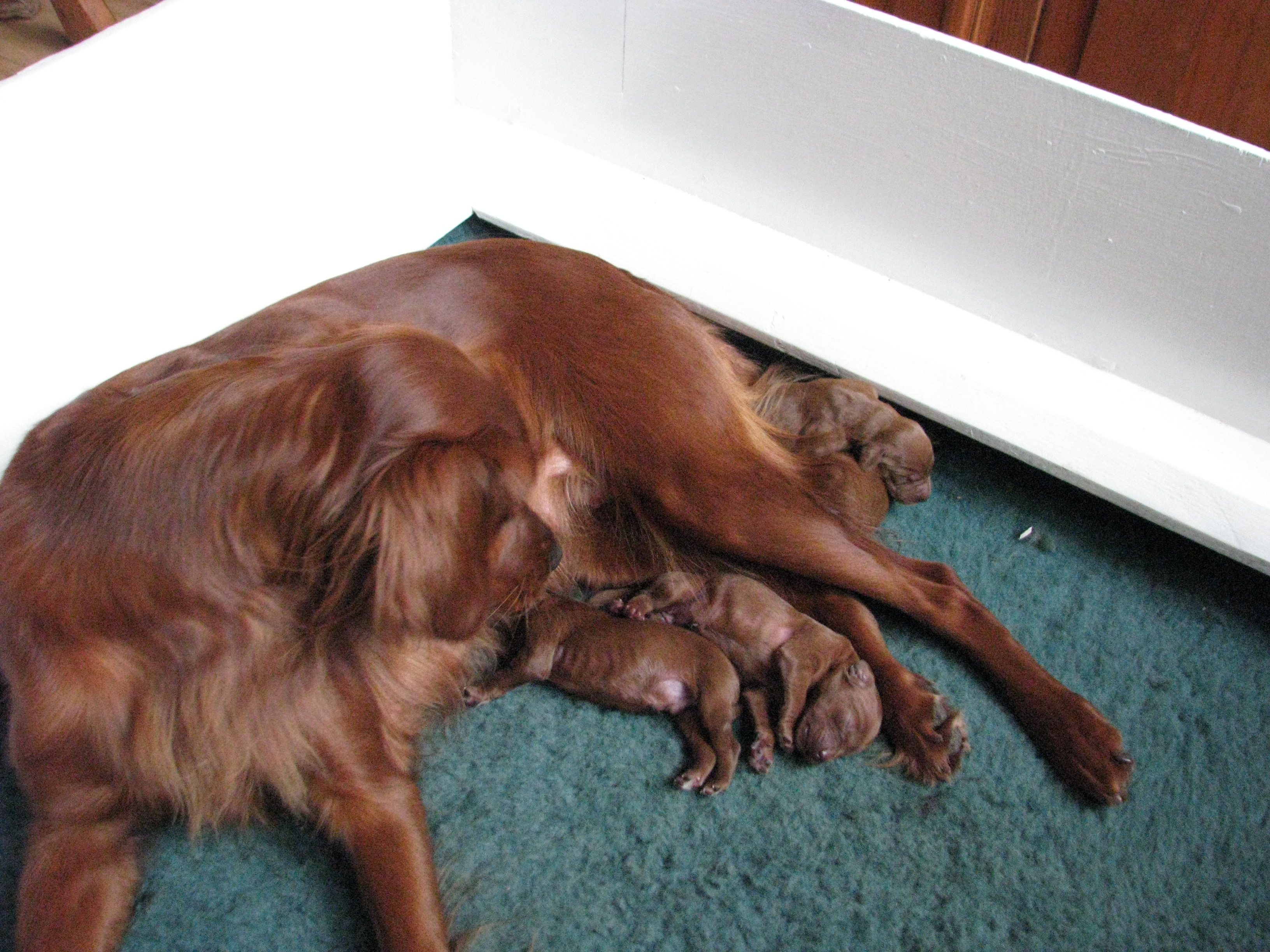 De pups doen het prima en zo ook moeders. Hierbij een filmpje van de pups aan de melkbar en een paar nieuwe foto’s.