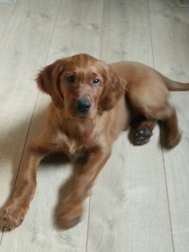 tijd voor een een nieuw verslag. De pups doen het alle vier prima, ze groeien goed en leren snel. Hierbij wat foto’s die ik van de huidige baasjes ontving en uiteraard wat foto’s van Aislinn.