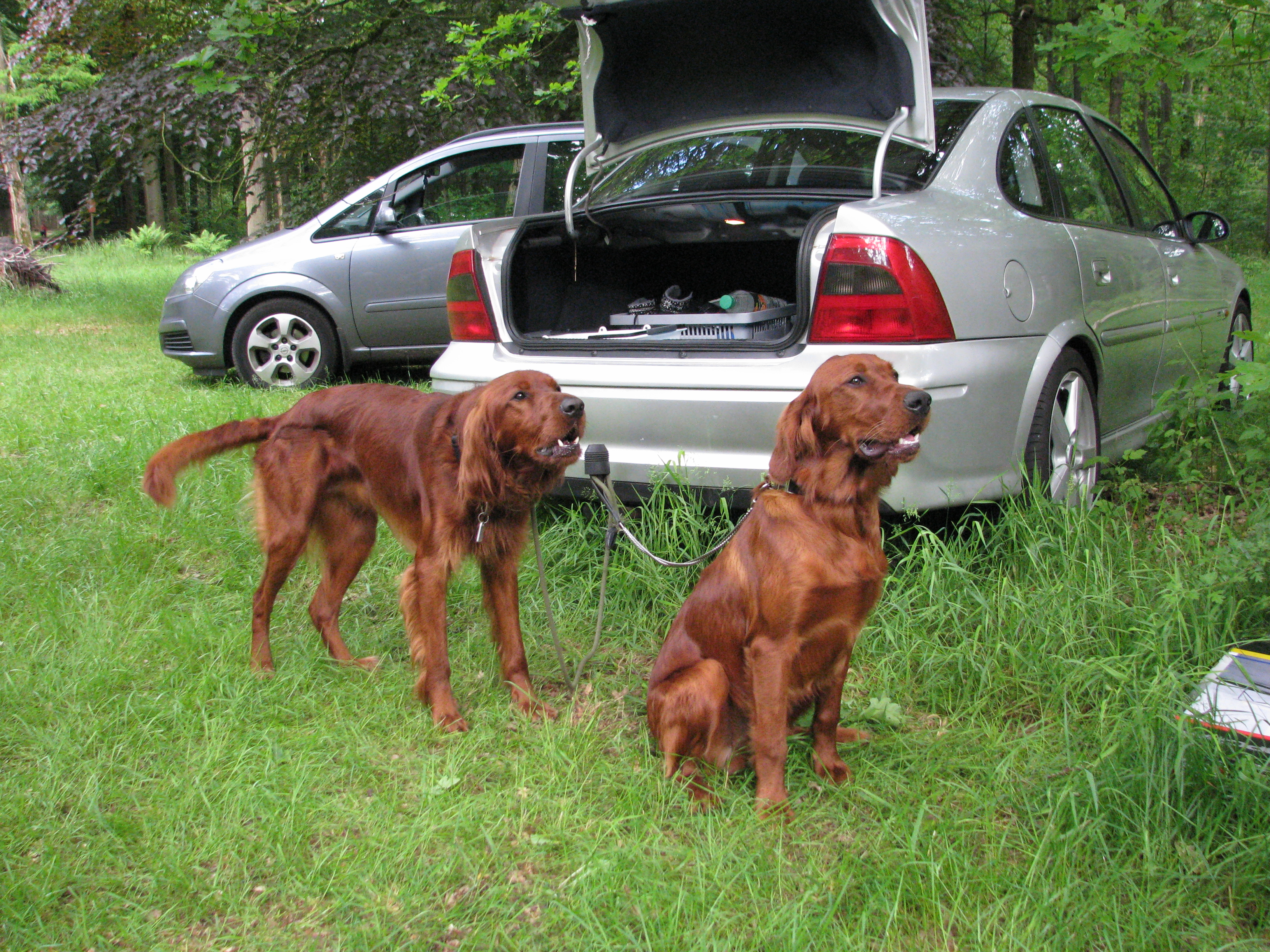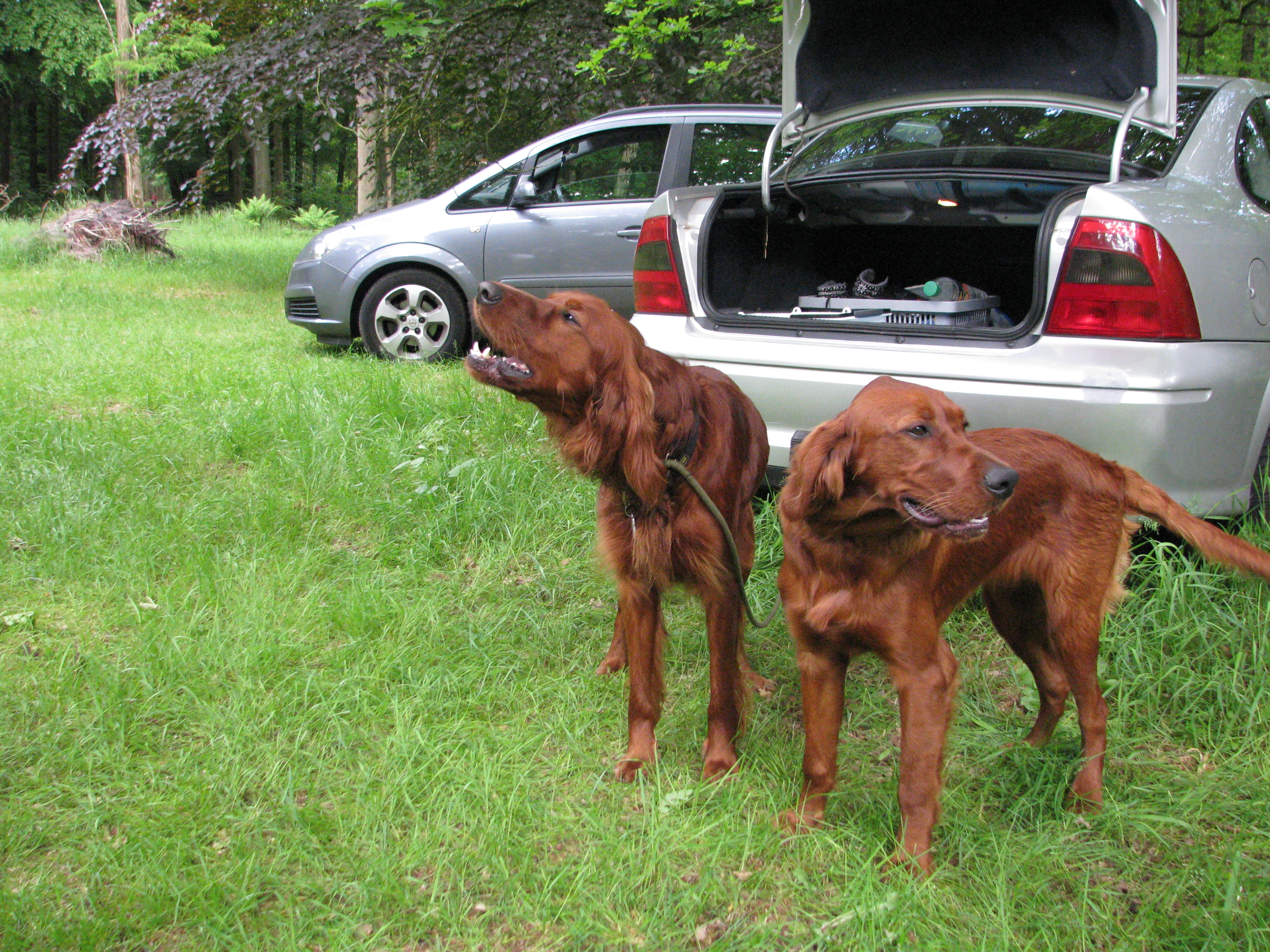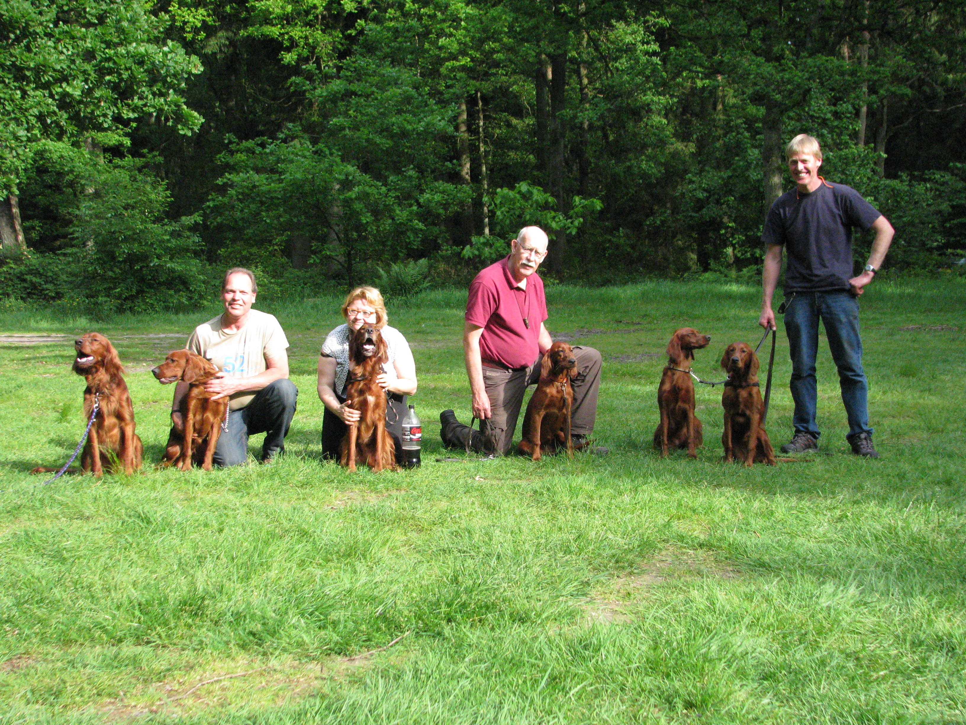 Hoog tijd voor een nieuwe update en nieuwe foto’s. Op 25 mei was er een regiowandeling met aansluitend een picknick van de Ierse Setterclub. Deze wandeling was tevens een reunie van de familie. Vader Cochise, moeder Kells en drie van de pups, Aislinn, Aideen en Adair waren hierbij aanwezig. Een mooie gelegenheid om even wat plaatjes te schieten. Aidan woont te ver weg en kon daardoor niet bij de wandeling aanwezig zijn. Gelukkig krijg ik wekelijks foto’s en updates van de baasjes via de mail.